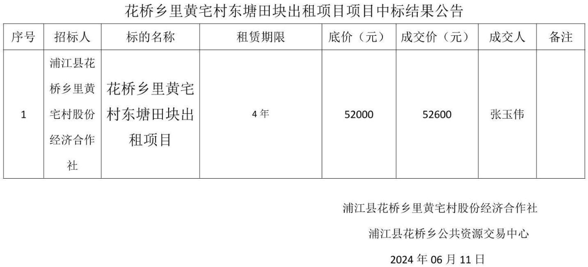 花橋鄉里黃宅村東塘農田出租項目_中標結果公告