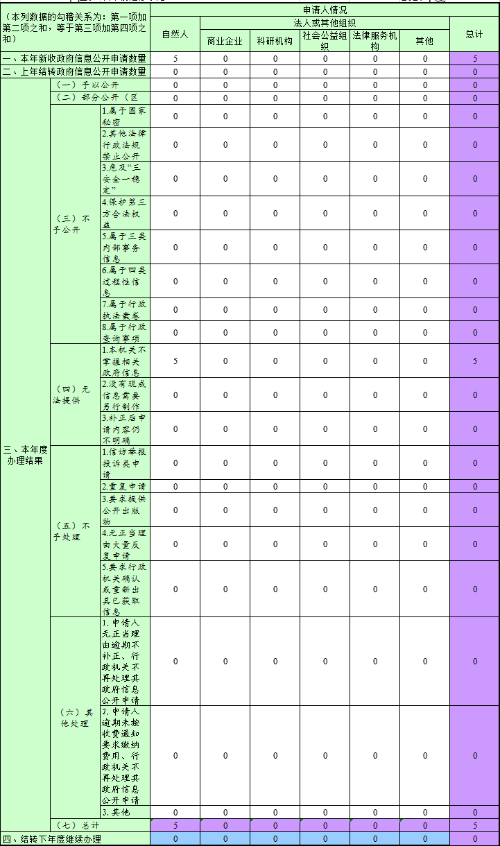 全街道共收到申請5件,在法律規定期限內答復5件,申請主體為自然人。