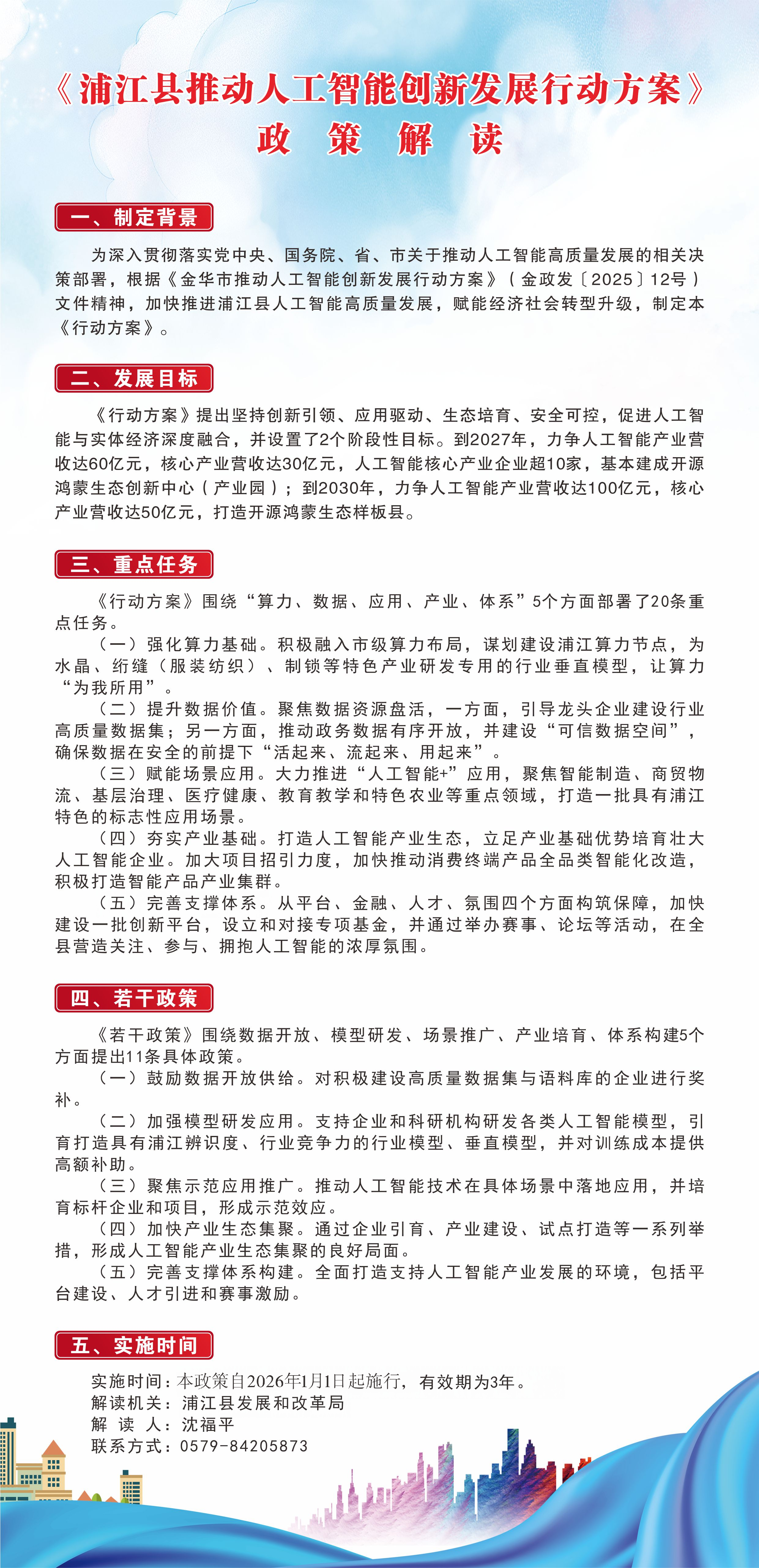 關(guān)于《浦江縣推動(dòng)人工智能創(chuàng)新發(fā)展行動(dòng)方案》的政策圖解