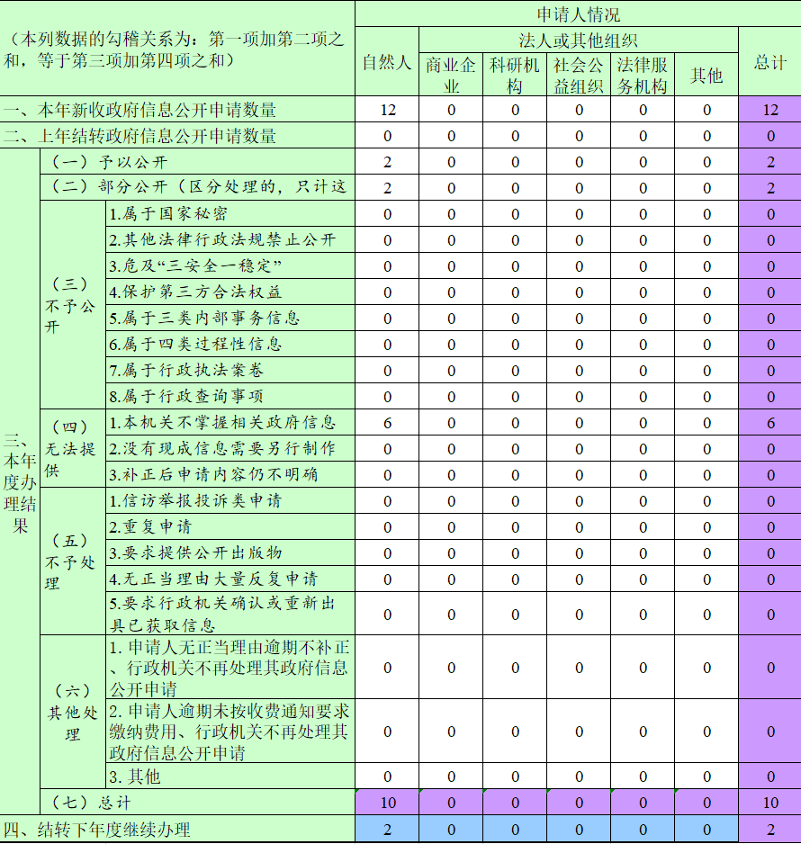 一、本年新收政府信息公開(kāi)申請(qǐng)數(shù)量 | 11 | 0 | 0 | 0 | 0 | 0 | 11 | ||