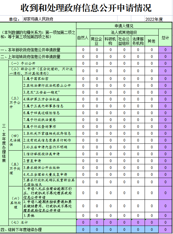 2022年度,鄭家塢鎮鎮未收到信息公開申請。