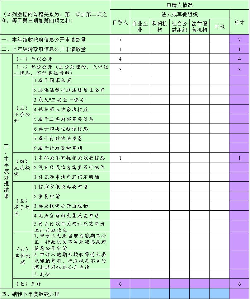 三、收到和處理政府信息公開申請情況
