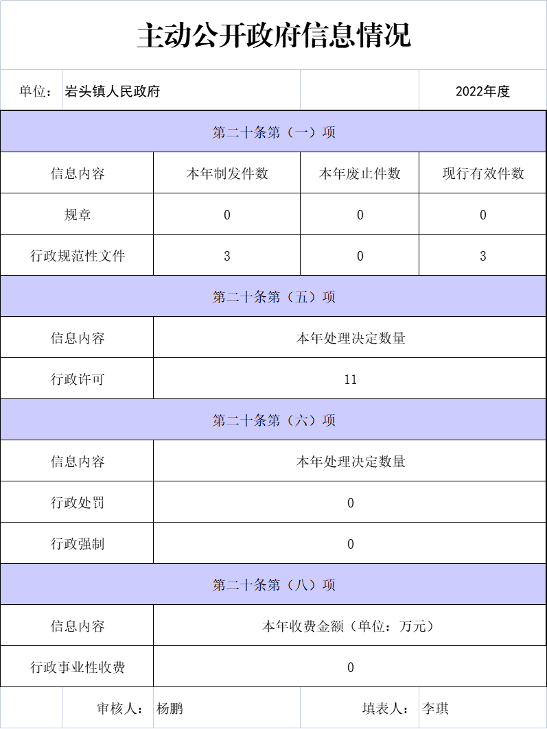 根據(jù)《中華人民共和國政府信息公開條例》(以下簡稱《條例》)的規(guī)定,特向社會公開2022年巖頭鎮(zhèn)政府信息公開工作年度報告。由政府信息公開總體情況、主動公開政府信息情況、收到和處理政府信息公開申請情況、政府信息公開行政復(fù)議和行政訴訟情況、存在主要問題和改進情況等五部分組成。本報告中所列數(shù)據(jù)的統(tǒng)計期限自2022年01月01日起至2022年12月31日止。如對本報告有任何疑問,請與巖頭鎮(zhèn)人民政府信息公開領(lǐng)導(dǎo)小組辦公室聯(lián)系(地址:浦江縣巖頭鎮(zhèn)巖禮路5號;郵編:322203;電話:84210110;傳真:84212417)。