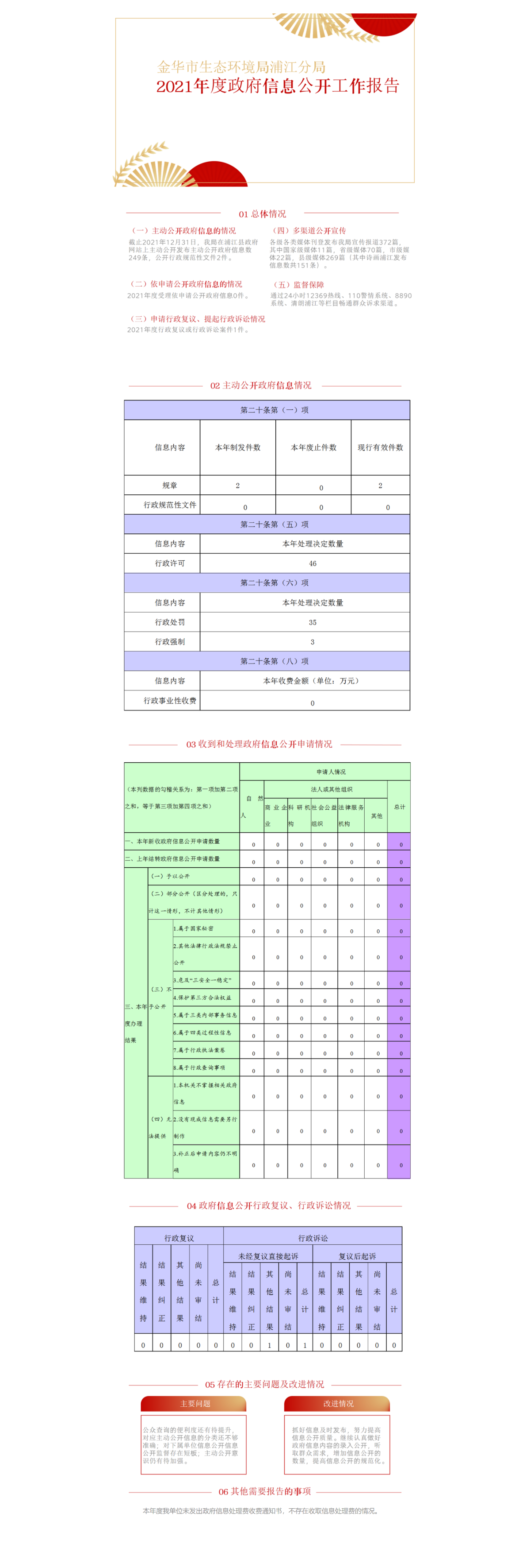 金華市生態環境局浦江分局2021年度政府信息公開工作報告圖解