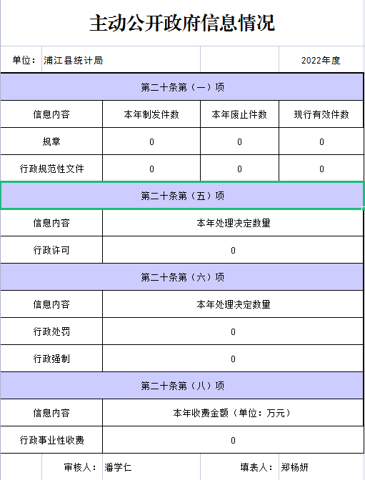 2022年度,縣統(tǒng)計局緊緊圍繞縣委縣政府決策部署,認真落實全縣政務公開工作要點,深入推進政府信息公開工作,全年通過“浦江縣人民政府網”(www.51risa.com)中的“縣統(tǒng)計局”專欄等方式主動公開政府信息61條,未收到政府信息公開申請,未發(fā)生政府信息公開行政復議、行政訴訟情況。