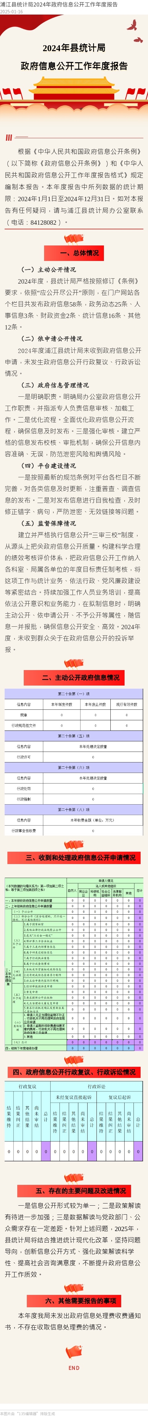 浦江縣統計局2024年政府信息公開工作年度報告圖解