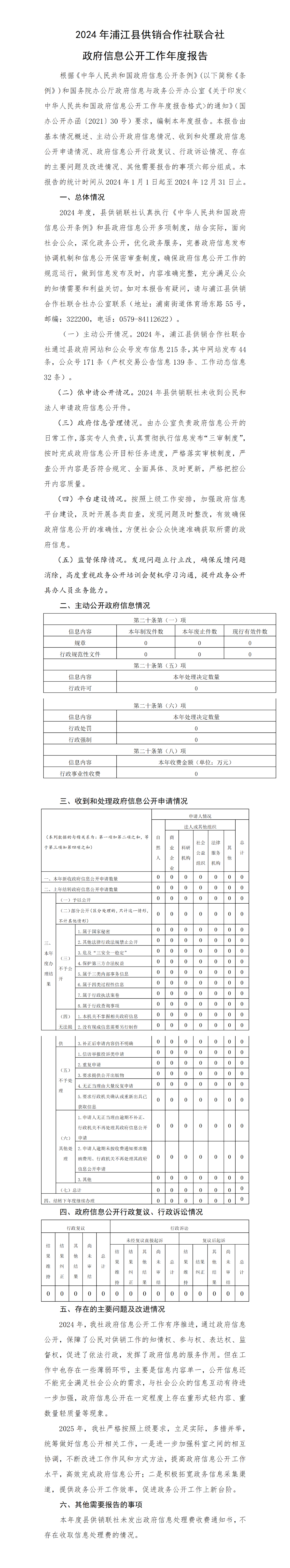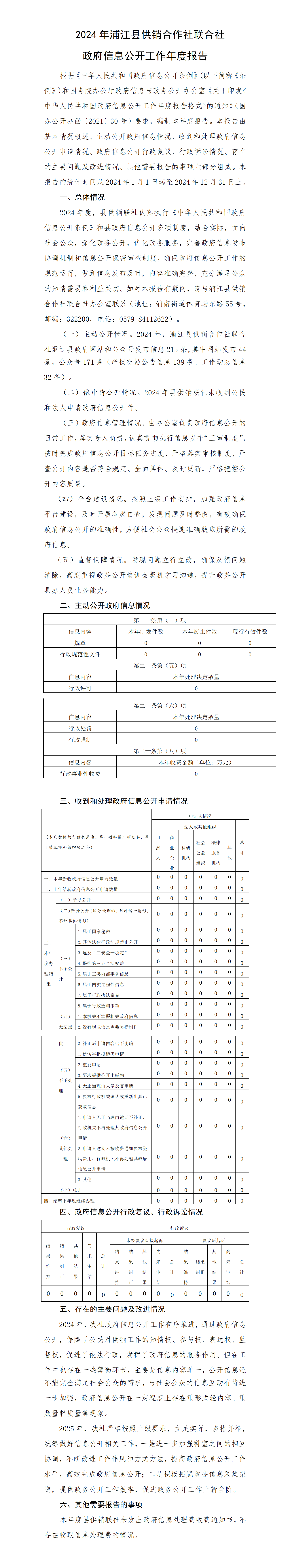 2024年浦江縣供銷合作社聯合社政府信息公開工作年度報告圖解