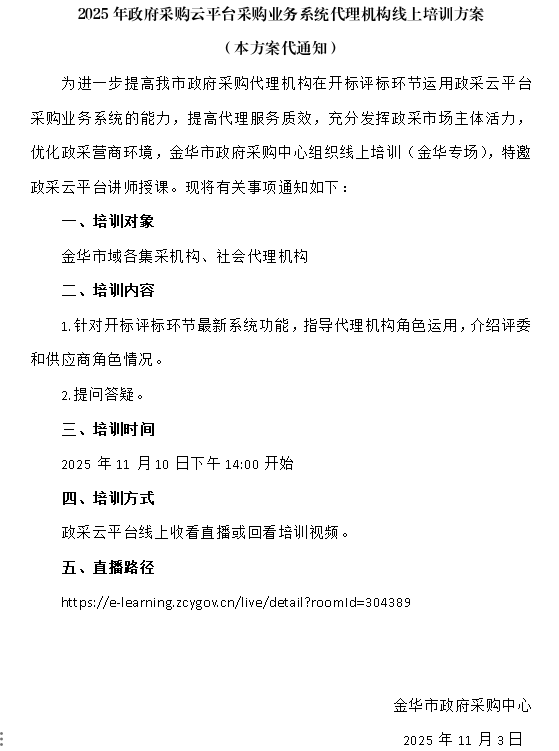 2025年政府采購云平臺采購業務系統代理機構線上培訓方案