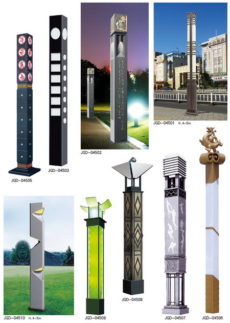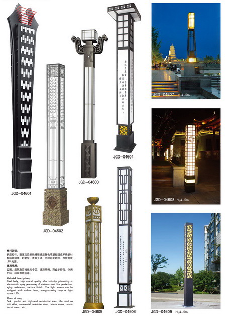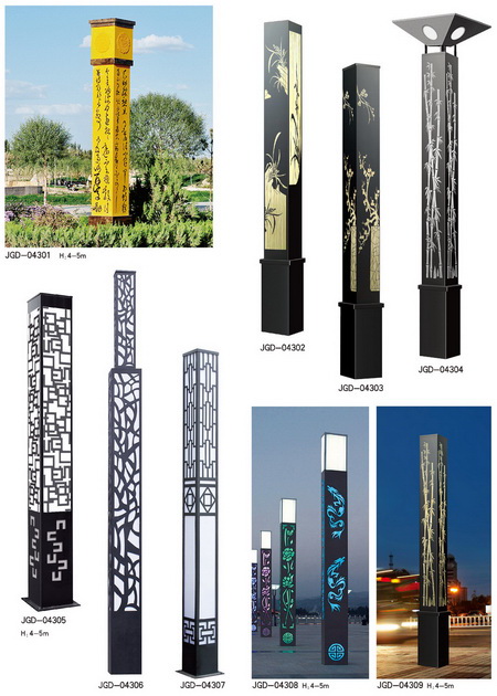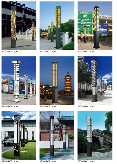 景觀燈分類:城市標志性景觀燈、仿古景觀燈、鏤空現代景觀燈、不銹鋼景觀燈、藝術造型景觀燈等